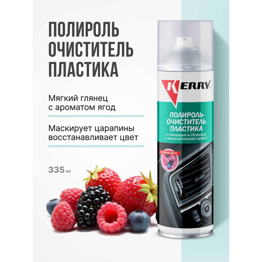Полироль-очиститель для пластика салона KERRY глянцевый, фреш, аэрозоль, 335 мл 11604746