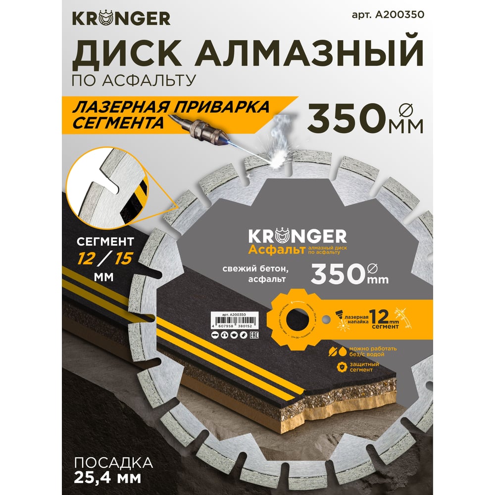 Алмазный диск по асфальту Kronger Lazer Asphalt 350 x 12 x 25.4 мм A200350