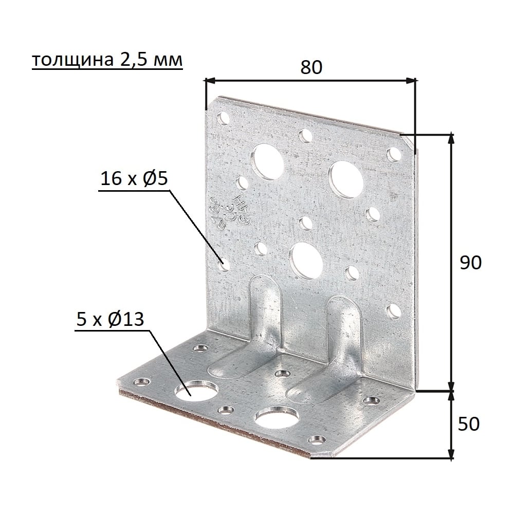 Перфорированный уголок ALBERTS усиленный, оцинкованный, 90x50x80х2.5 мм 334659