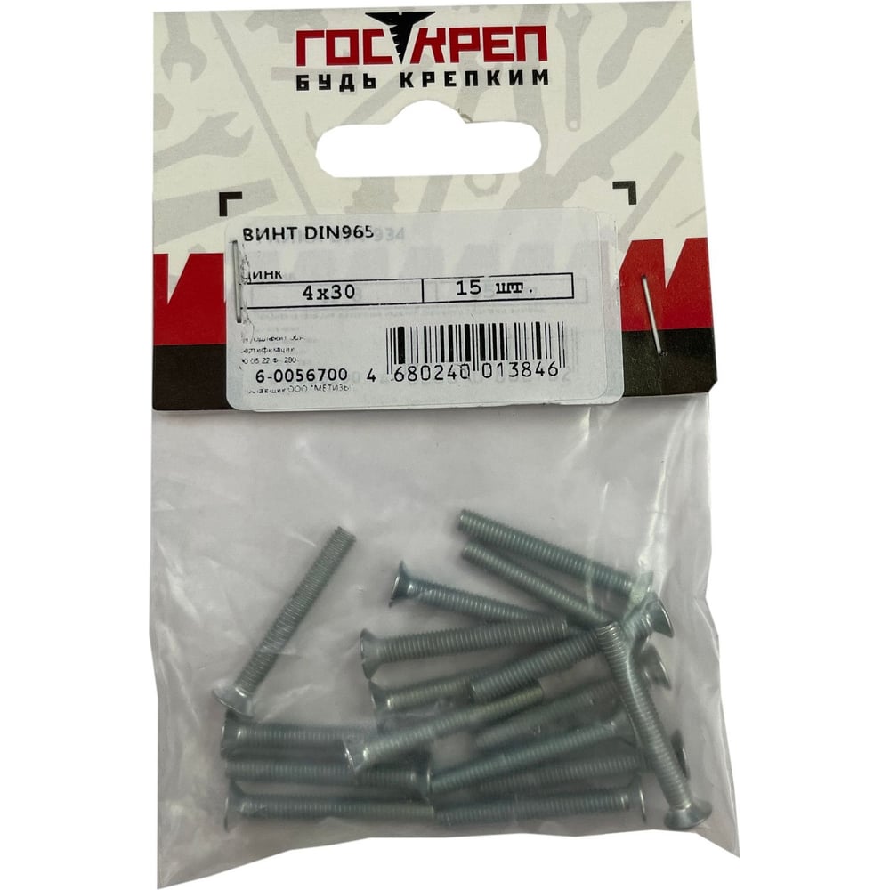 Винт Госкреп DIN965, М4х30, 15 шт. 6-0056700