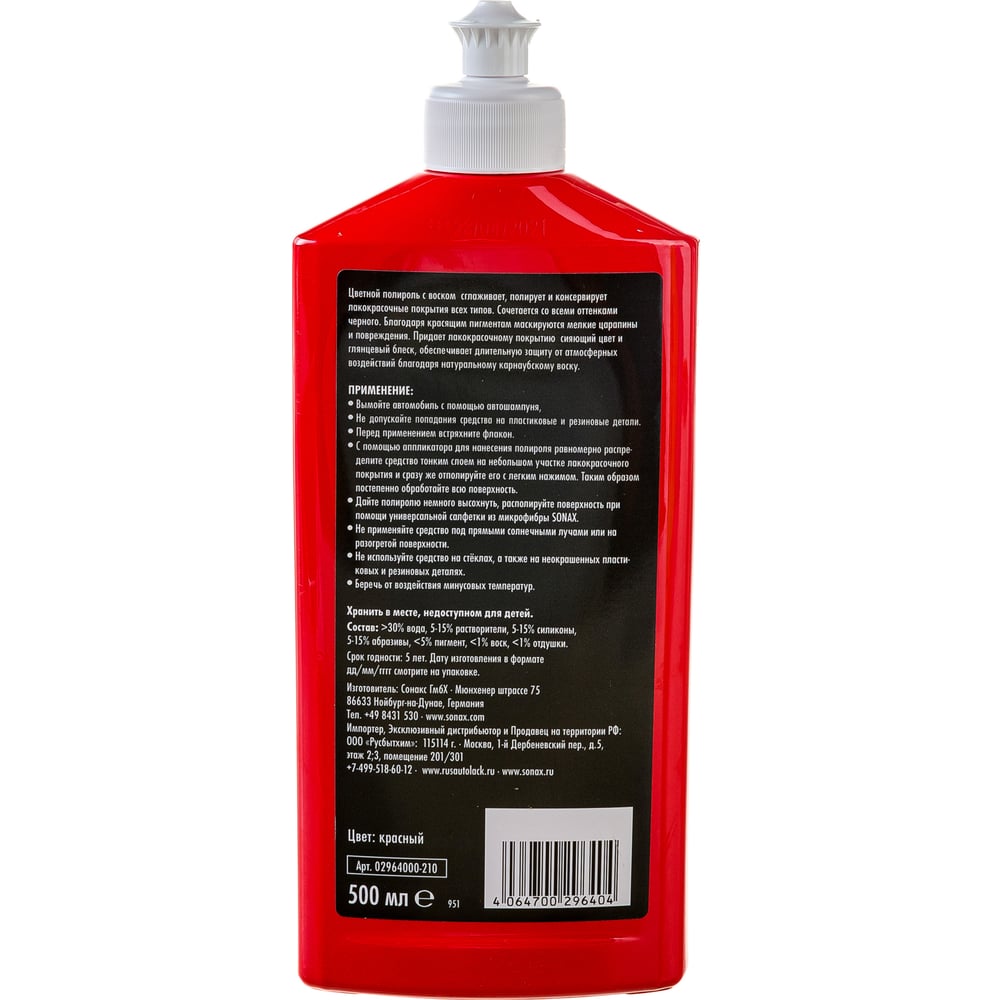 Цветной полироль с воском SONAX красный NanoPro 0,5л 296400