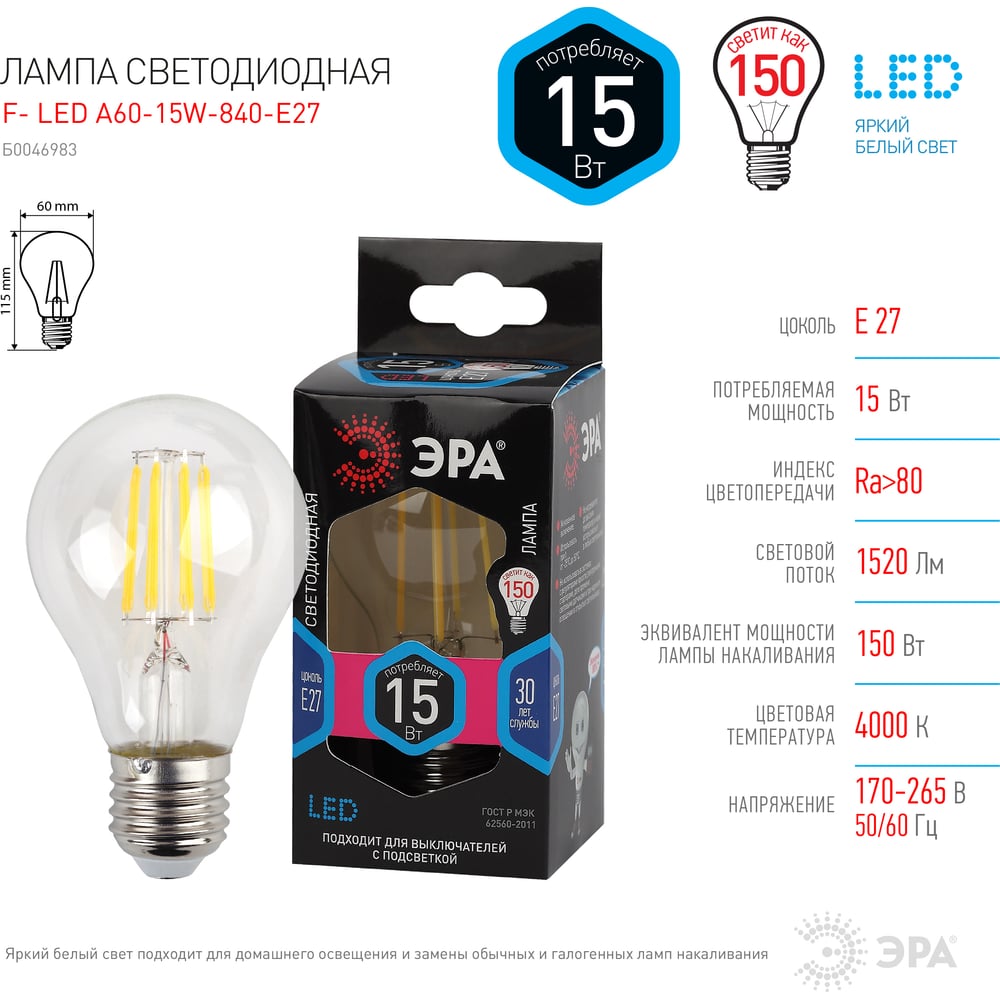 | Эквивалент лампы накаливания | 150 Вт |