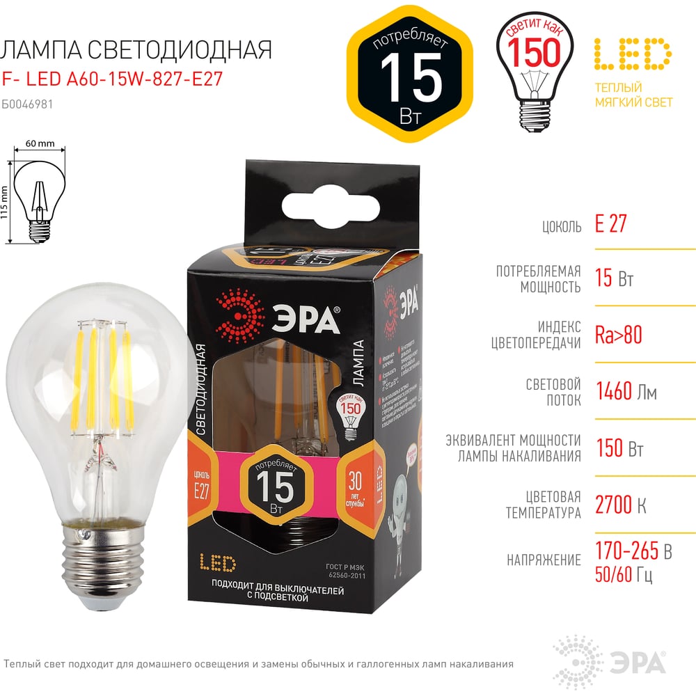 Филаментная лампа ЭРА A6015W827E27 Б0046981