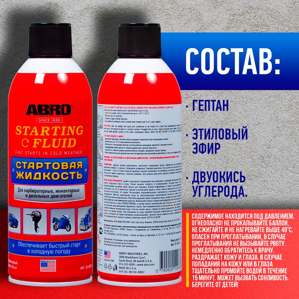 Стартовая жидкость ABRO, 312 г SF-650-RW