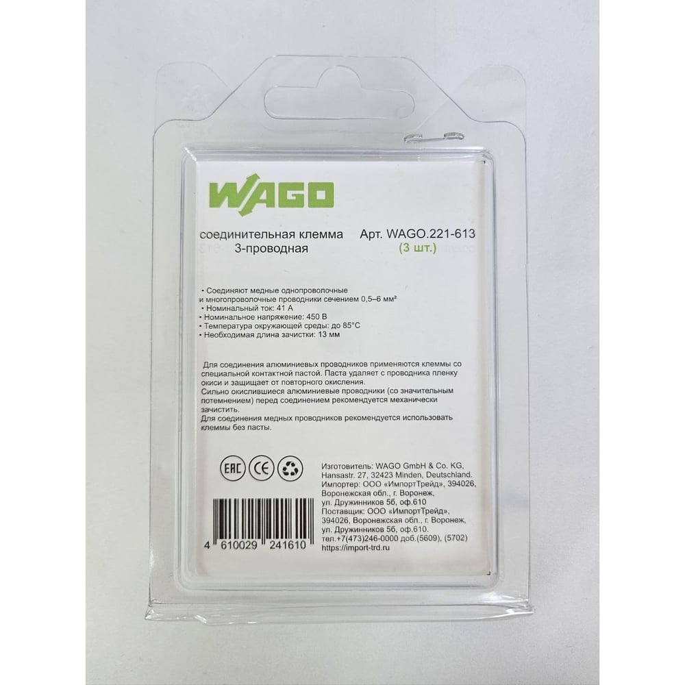 Трехпроводная соединительная клемма WAGO 221-613 41610