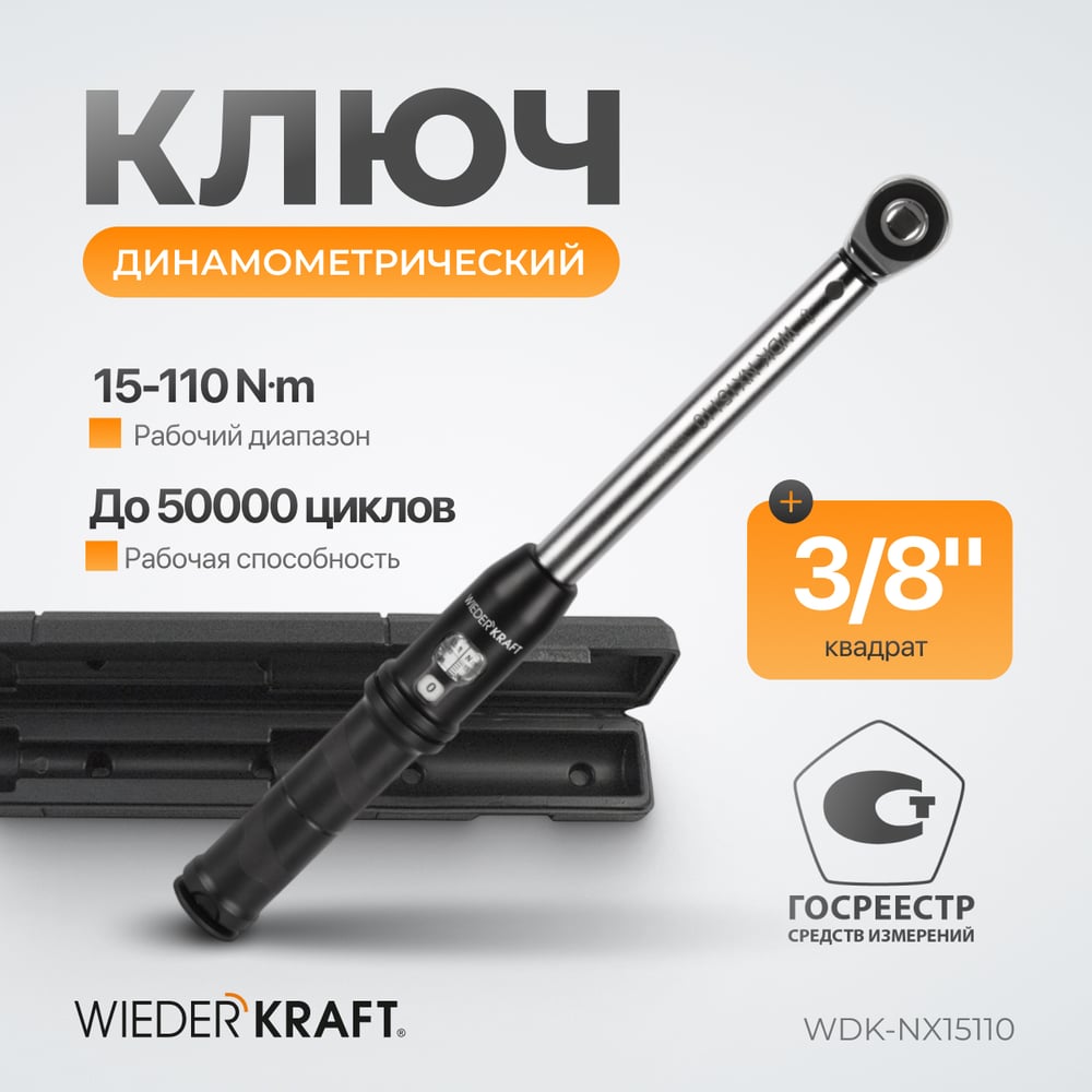 Динамометрический ключ WIEDERKRAFT 15-110 Нм, трещотка с проходным квадратом 3/8 WDK-NX15110