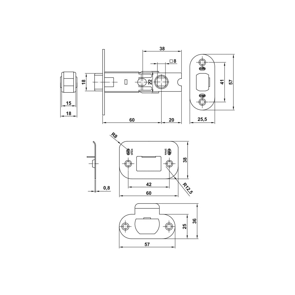 Дверная защелка Amig покрытие никель 9-60 NI