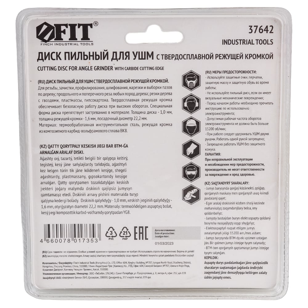 Диск пильный по дереву (125х22.2 мм) FIT 37642