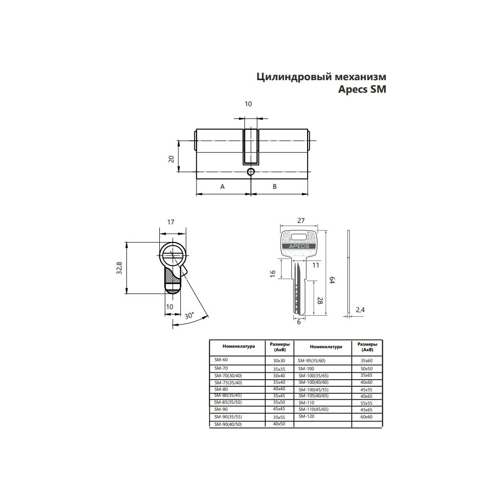 Цилиндровый механизм APECS SM-95/35/60/-NI 28623