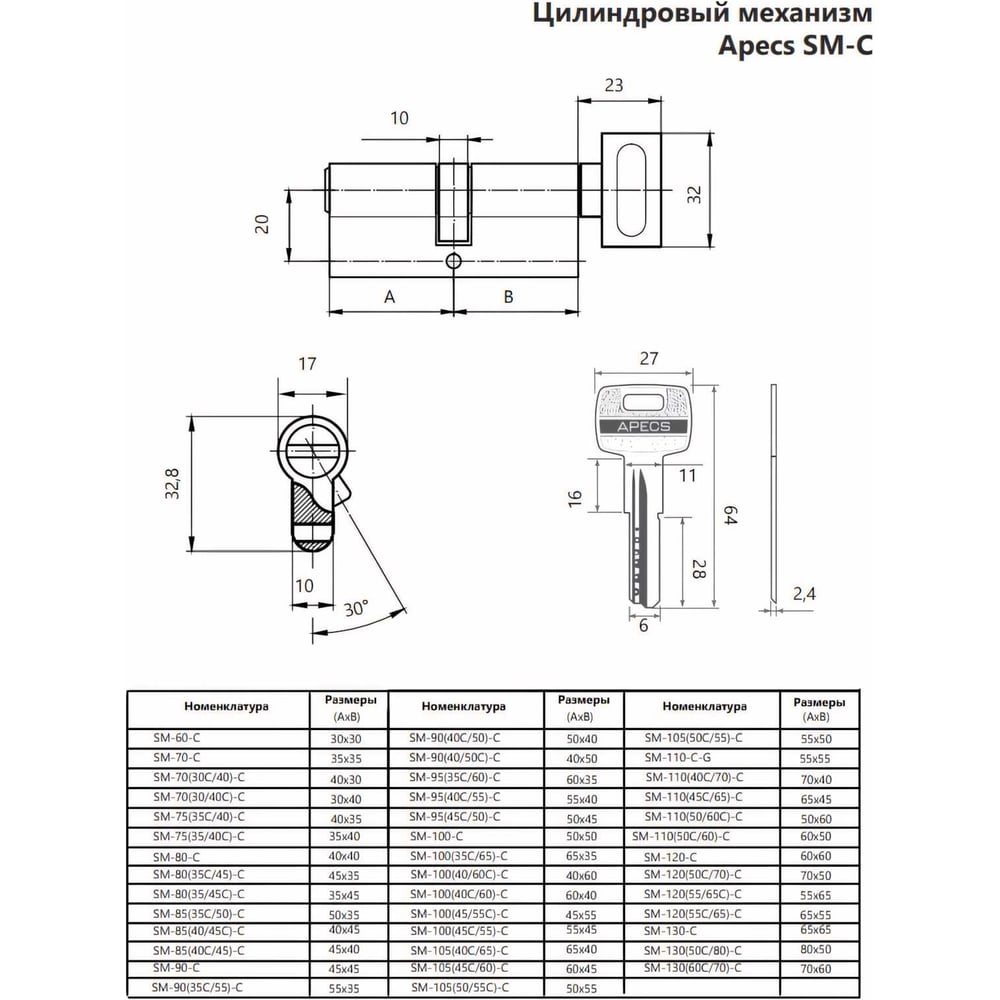 Цилиндровый механизм APECS SM-110/50C/60/-C-NI 23191
