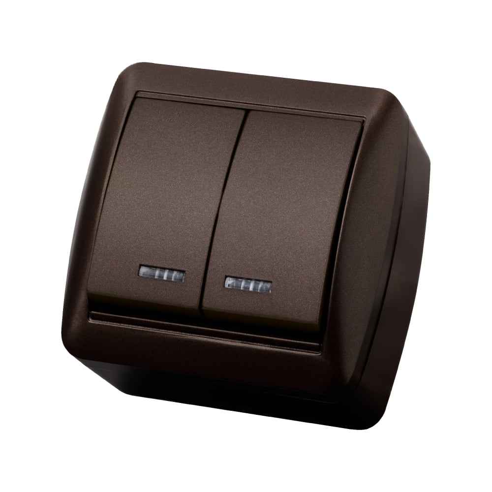 Выключатель с подсветкой двухклавишный накладной IP44 TDM ELECTRIC 10А шоколад, серия "Селигер" SQ1818-0204