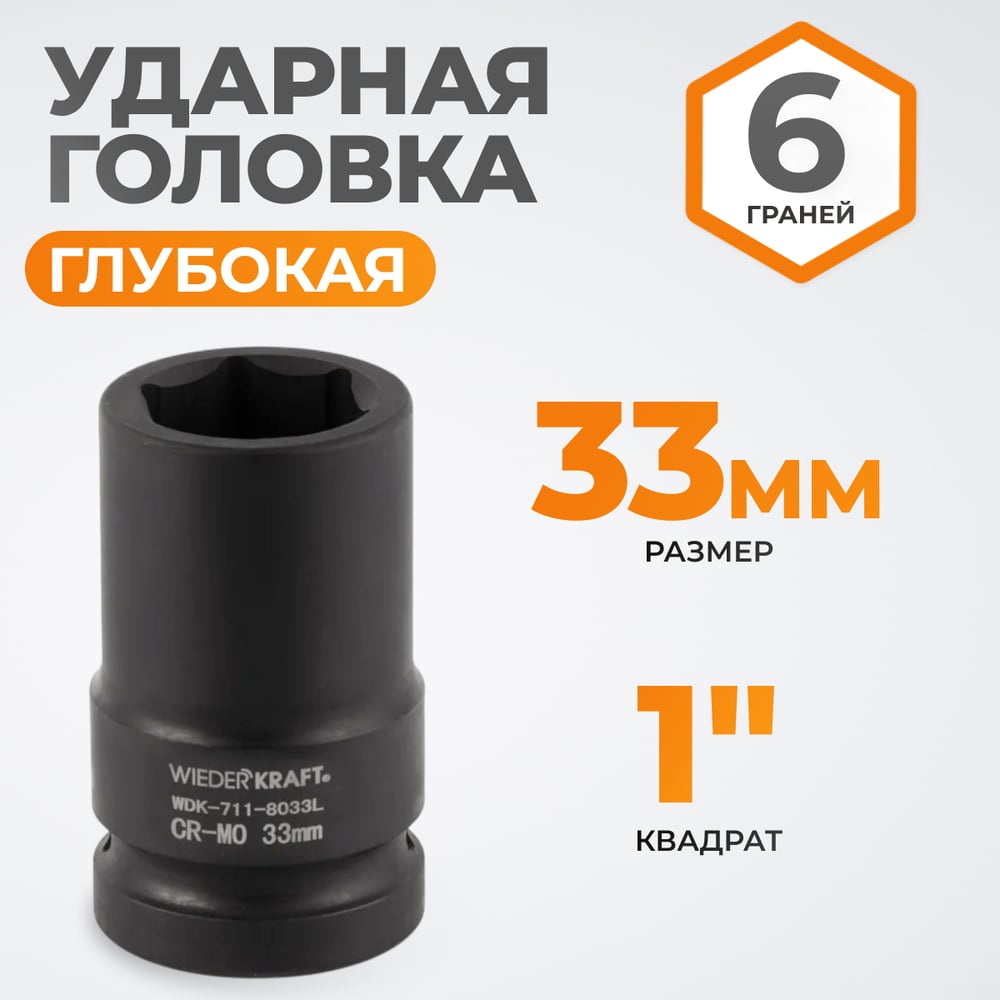 Головка торцевая ударная глубокая 6-гранная (33 мм; 1") WIEDERKRAFT WDK-711-8033L