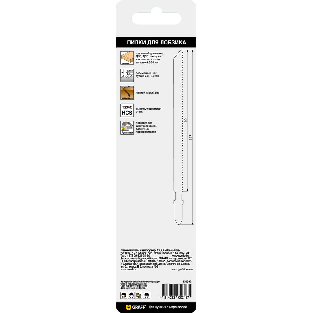 Пилка по дереву для лобзика GRAFF T234X Standart 131392