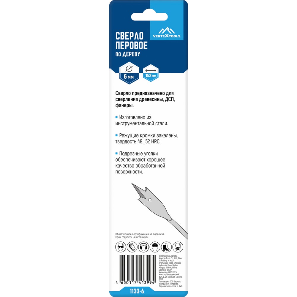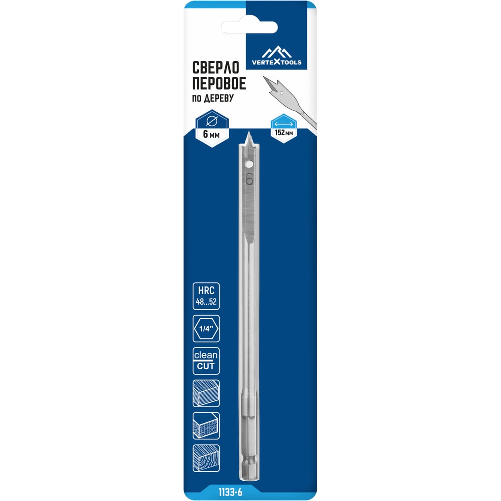 Сверло перовое по дереву (6 мм; шестигранный хвостовик) vertextools 1133-6