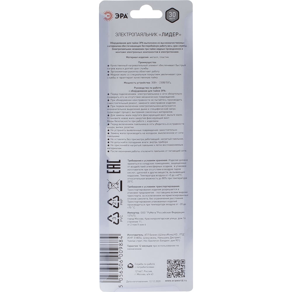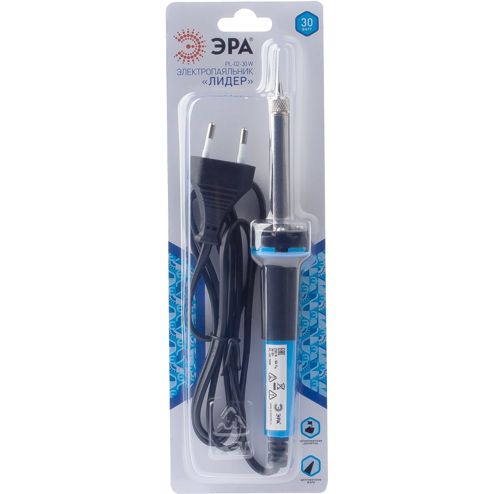 Паяльник ЭРА Лидер с двухкомпонентной рукояткой, жало Long life, 230 В, 30 Вт PL0230W Б0046946