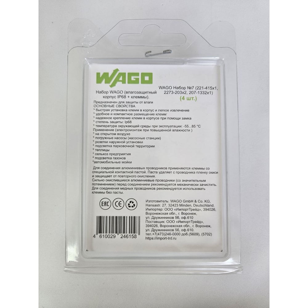 Набор влагозащитный корпус+клеммы WAGO набор №7 46158