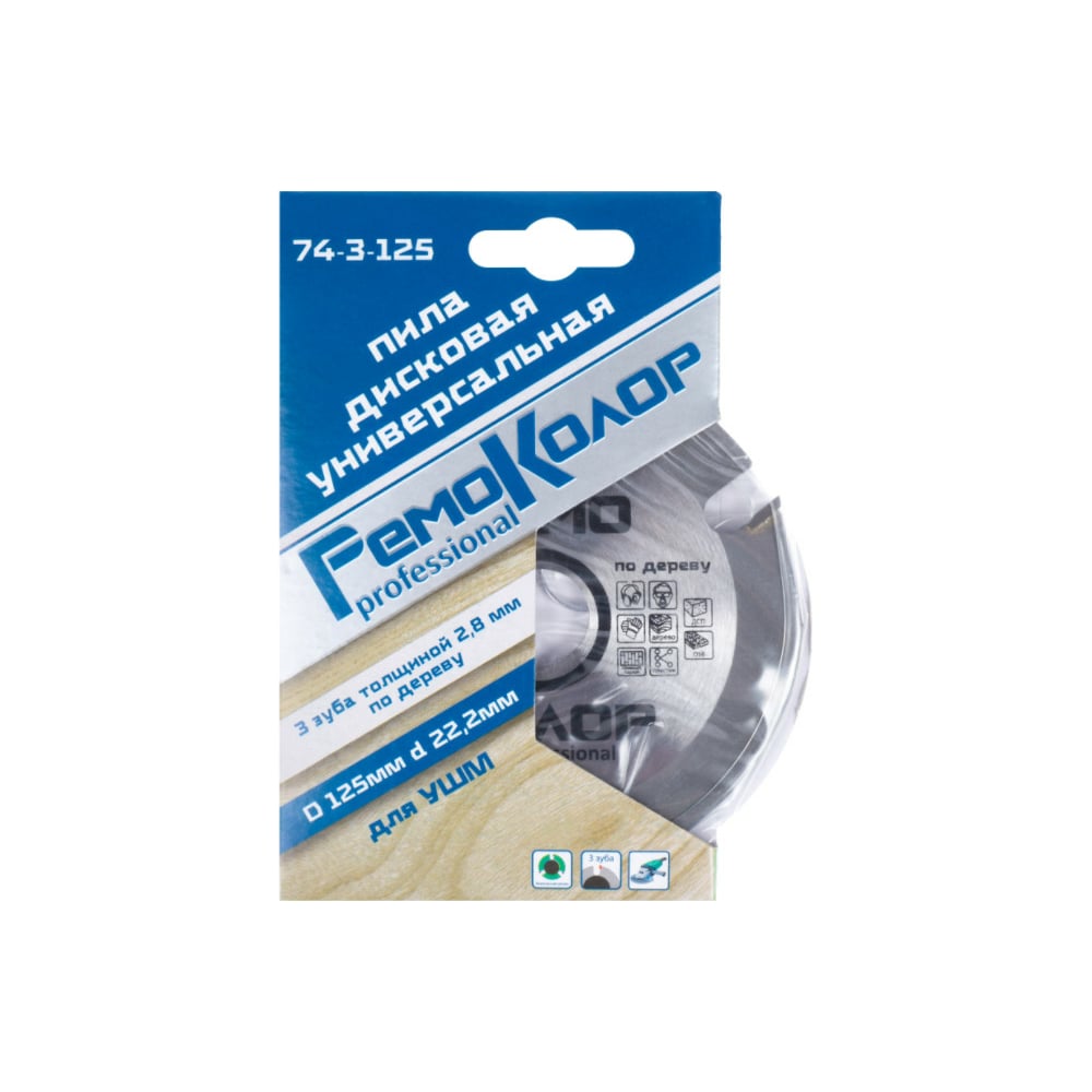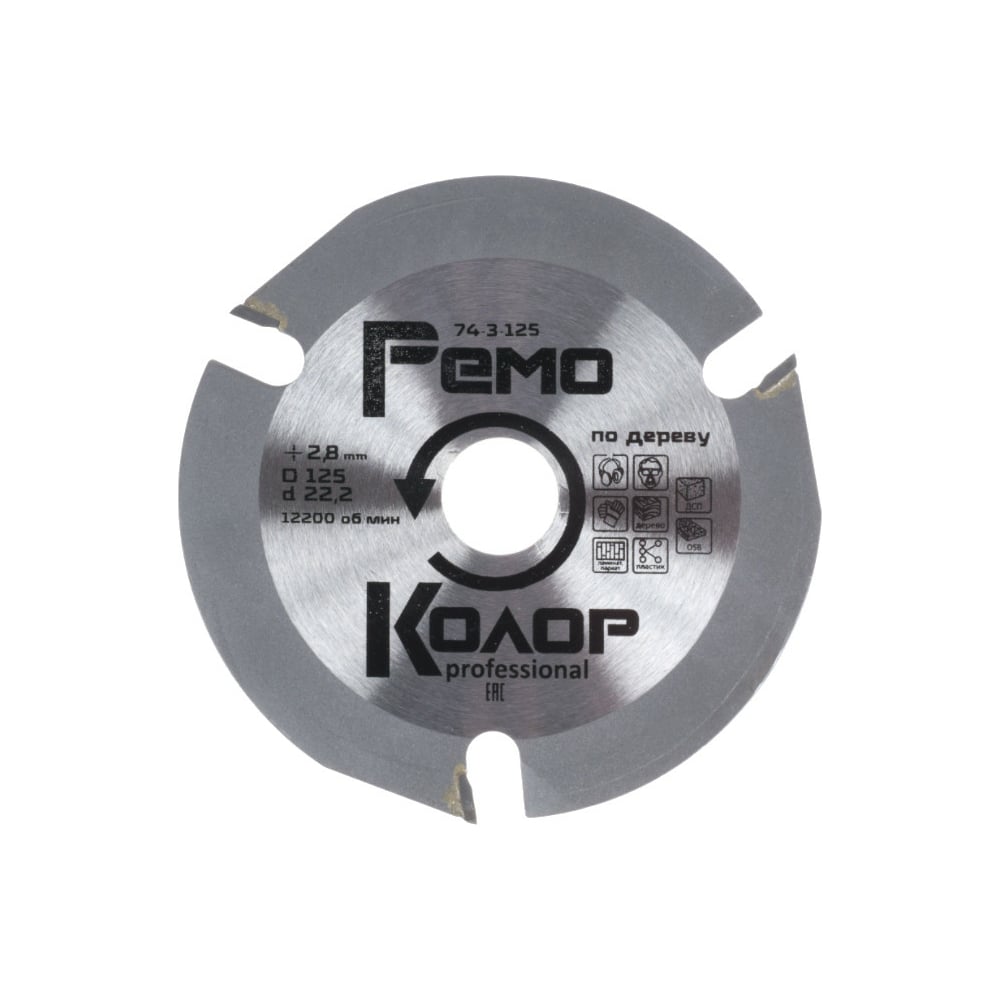 Диск пильный по дереву (125х2.8х22.2 мм; 3 зуба) для УШМ РемоКолор 74-3-125