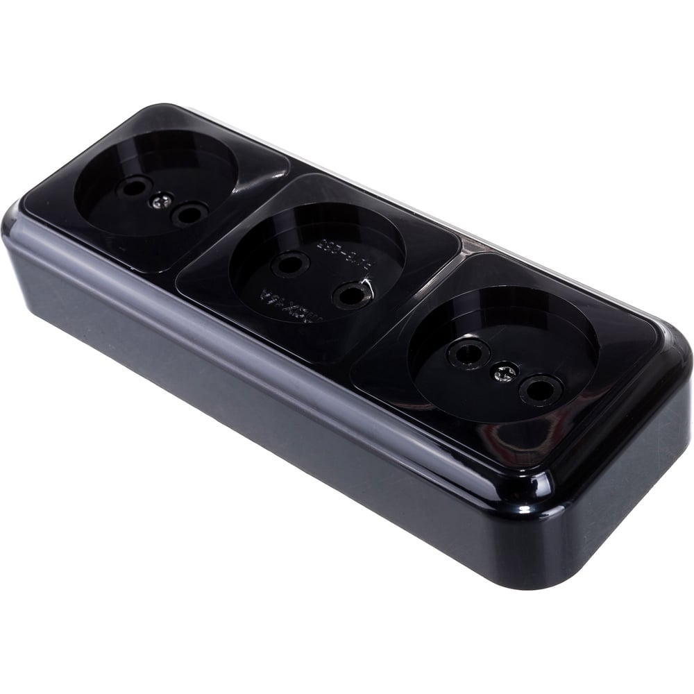 Розетка Bylectrica 3-местная ОУ, серия ПРАЛЕСКА, черный, РА16-263 черный