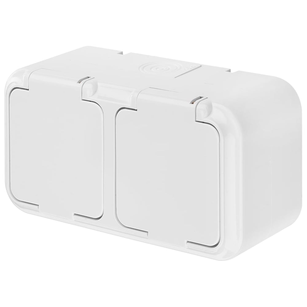 Розетка Bylectrica 2-местная ОУ с заз.конт. IP54, серия ПРАЛЕСКА АКВА, белый, РА16-303