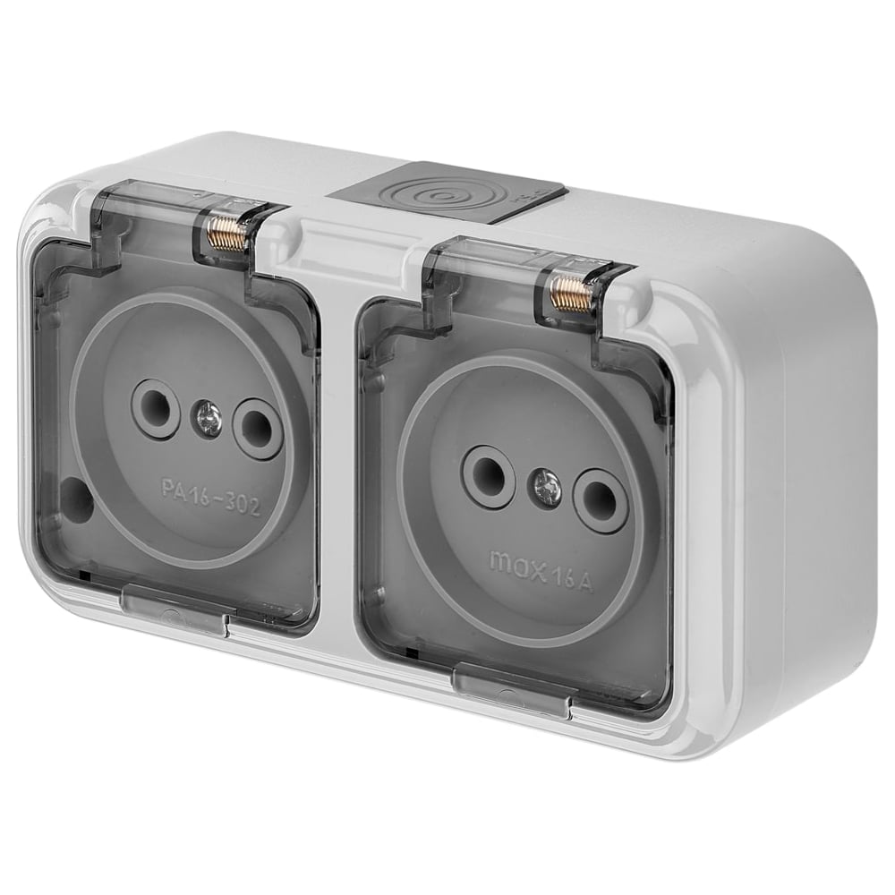 Розетка Bylectrica 2-местная ОУ IP54, с прозрачной крышкой, серия ПРАЛЕСКА АКВА, серый, РА16-302 02