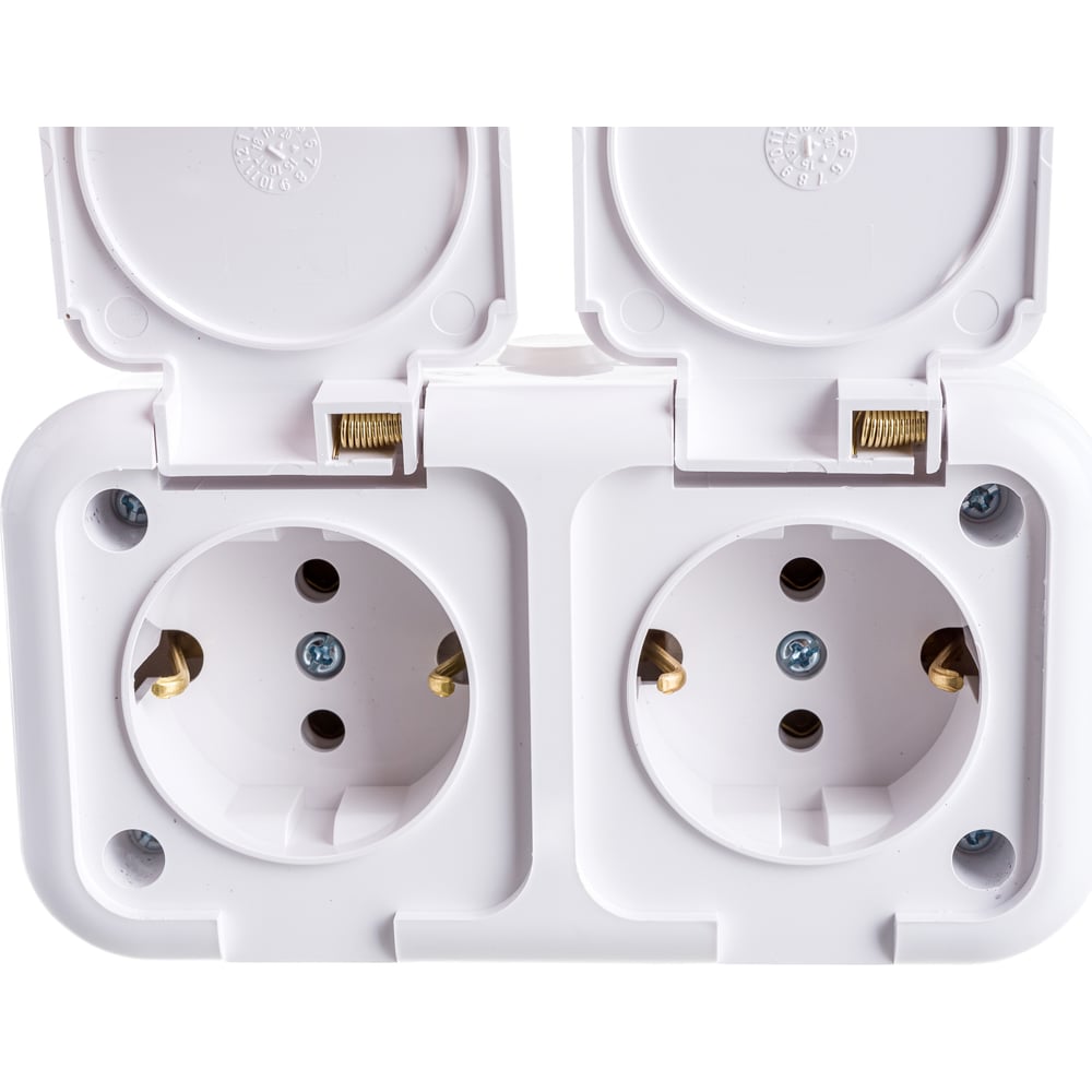 Розетка Bylectrica 2-местная ОУ с заз.конт. IP44 серия Прочие изделия, белый, РА10-213