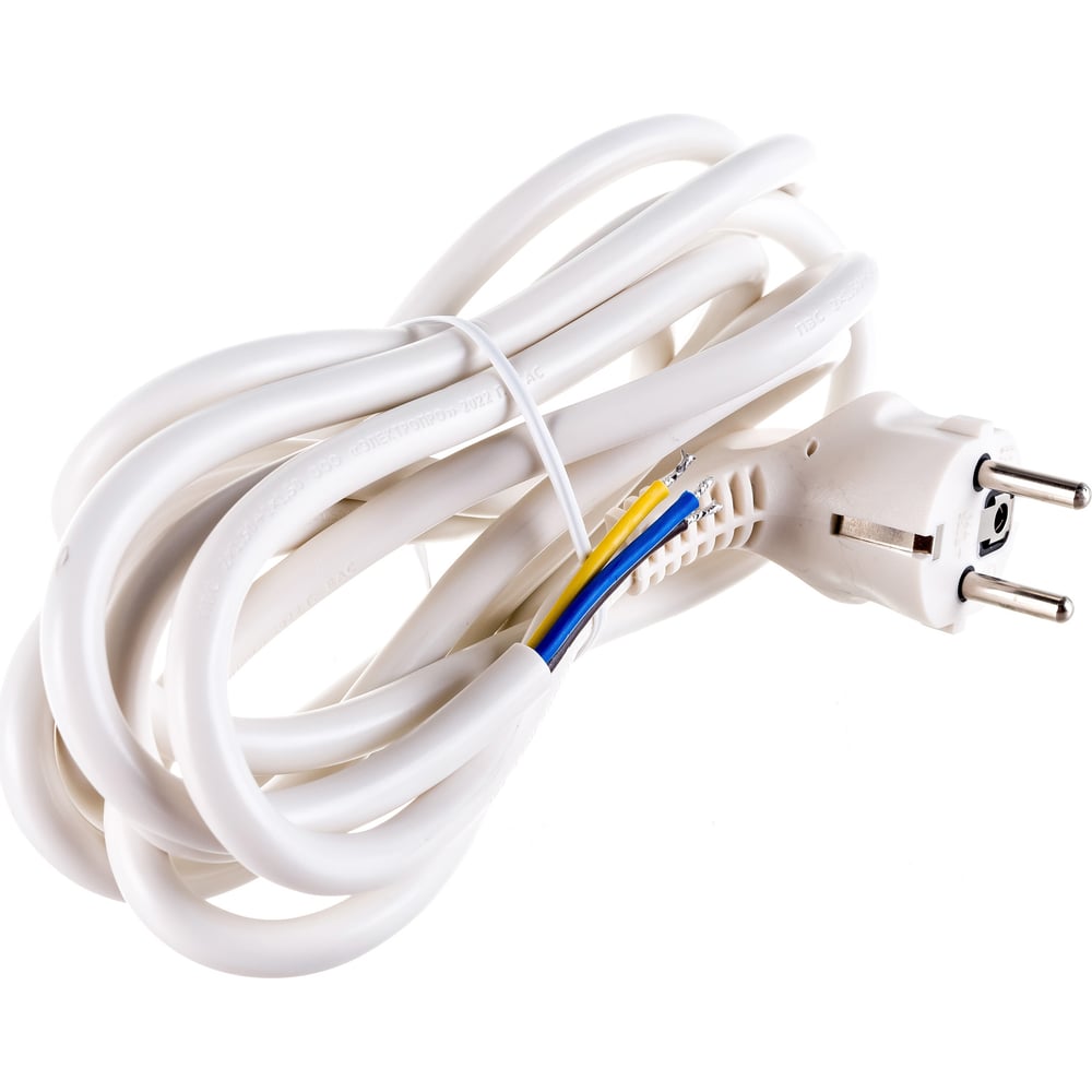 Сетевой шнур с вилкой ЭРА U-3x1,5-3m-W с заземлением 3м ПВС 3x1,5мм2 белый Б0048708