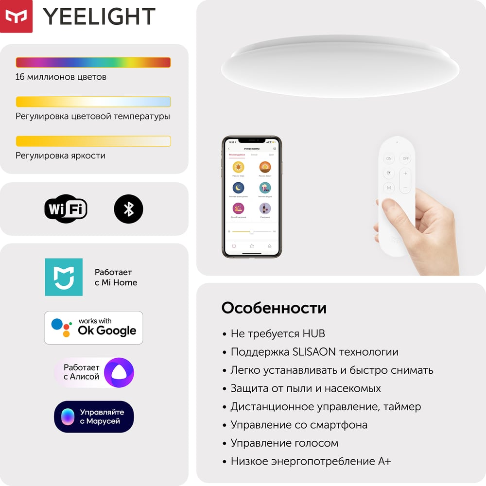 | Цветность | регулируемый (2700-6500 K) |