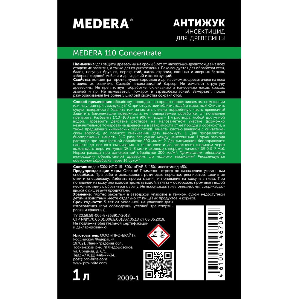 Инсектицид для древесины MEDERA MEDERA 110 Антижук 2009-1