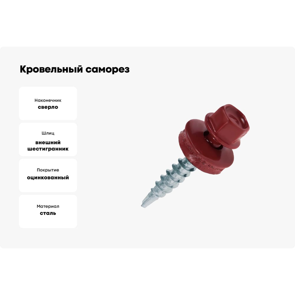Кровельные саморезы ВИРТУОЗ 4,8х38 мм, RAL 3005, красное вино, 25 шт. 26804