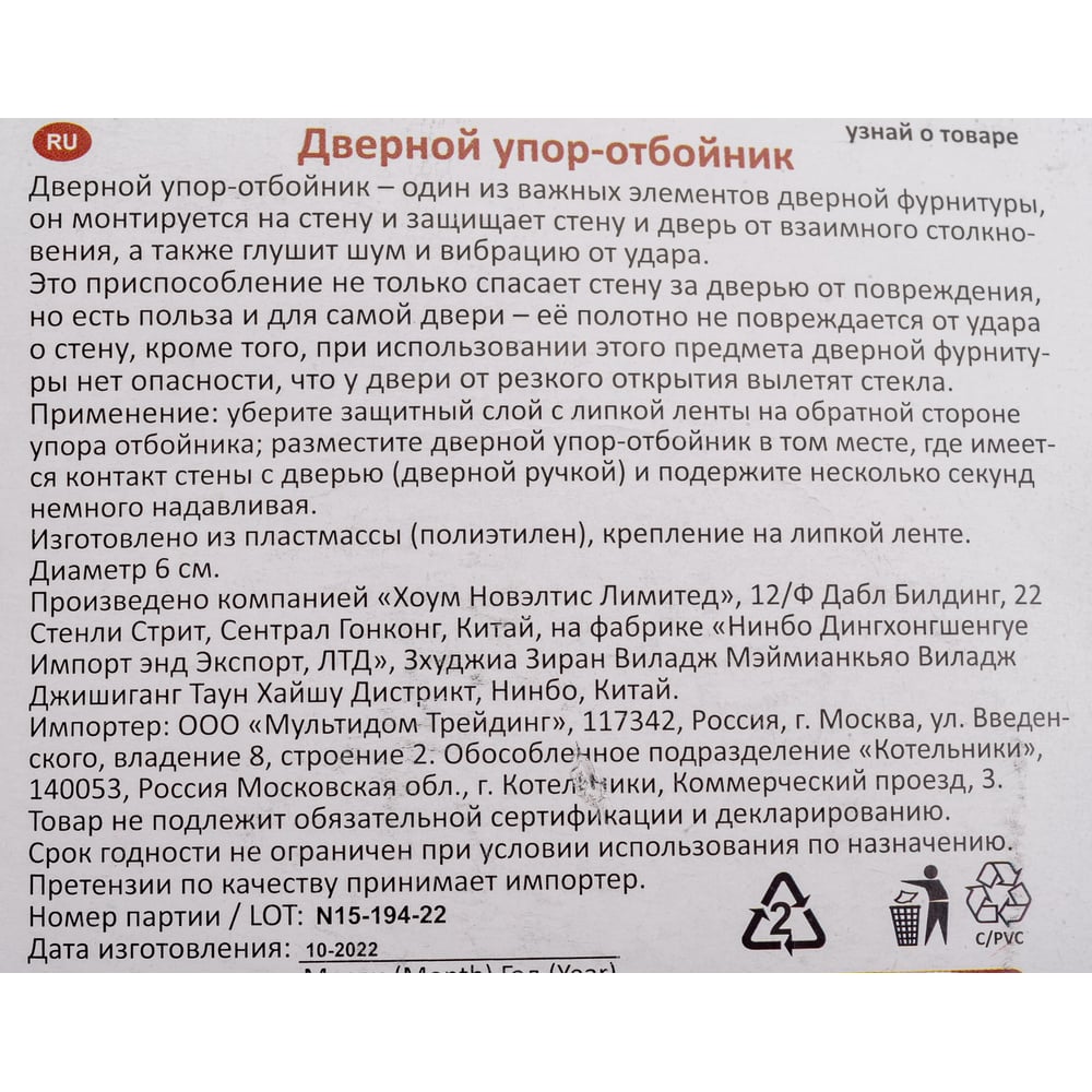 Дверной упор-отбойник МУЛЬТИДОМ диаметр 6 см NY45-5