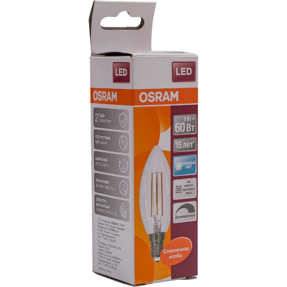 Светодиодная лампа OSRAM LED STAR, DIM, B, свеча, 5Вт, E14, 520 Лм, 4000 К, нейтральный белый свет 4058075230385