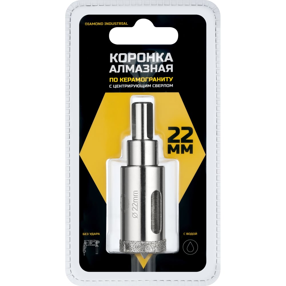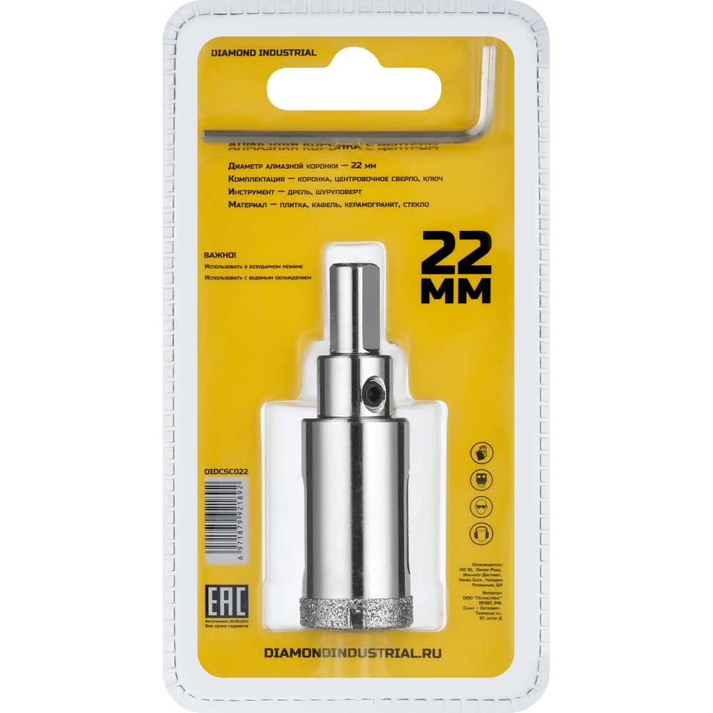 Коронка алмазная по керамограниту и керамике с центрирующим сверлом 22 мм Diamond Industrial DIDCSC022
