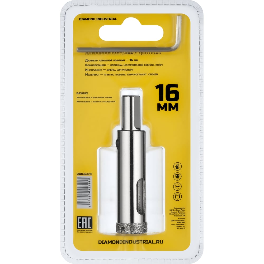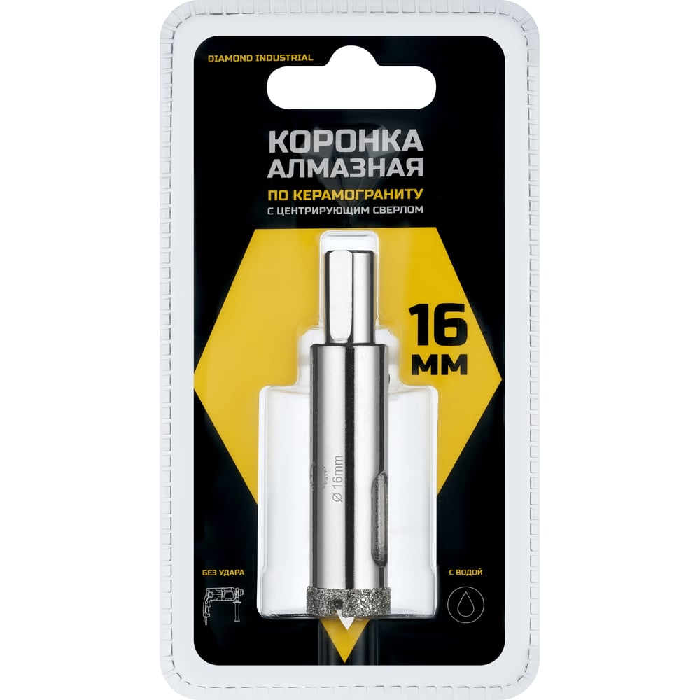 Коронка алмазная по керамограниту и керамике с центрирующим сверлом 16 мм Diamond Industrial DIDCSC016