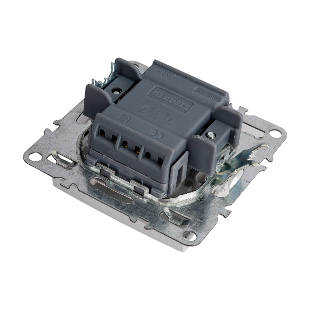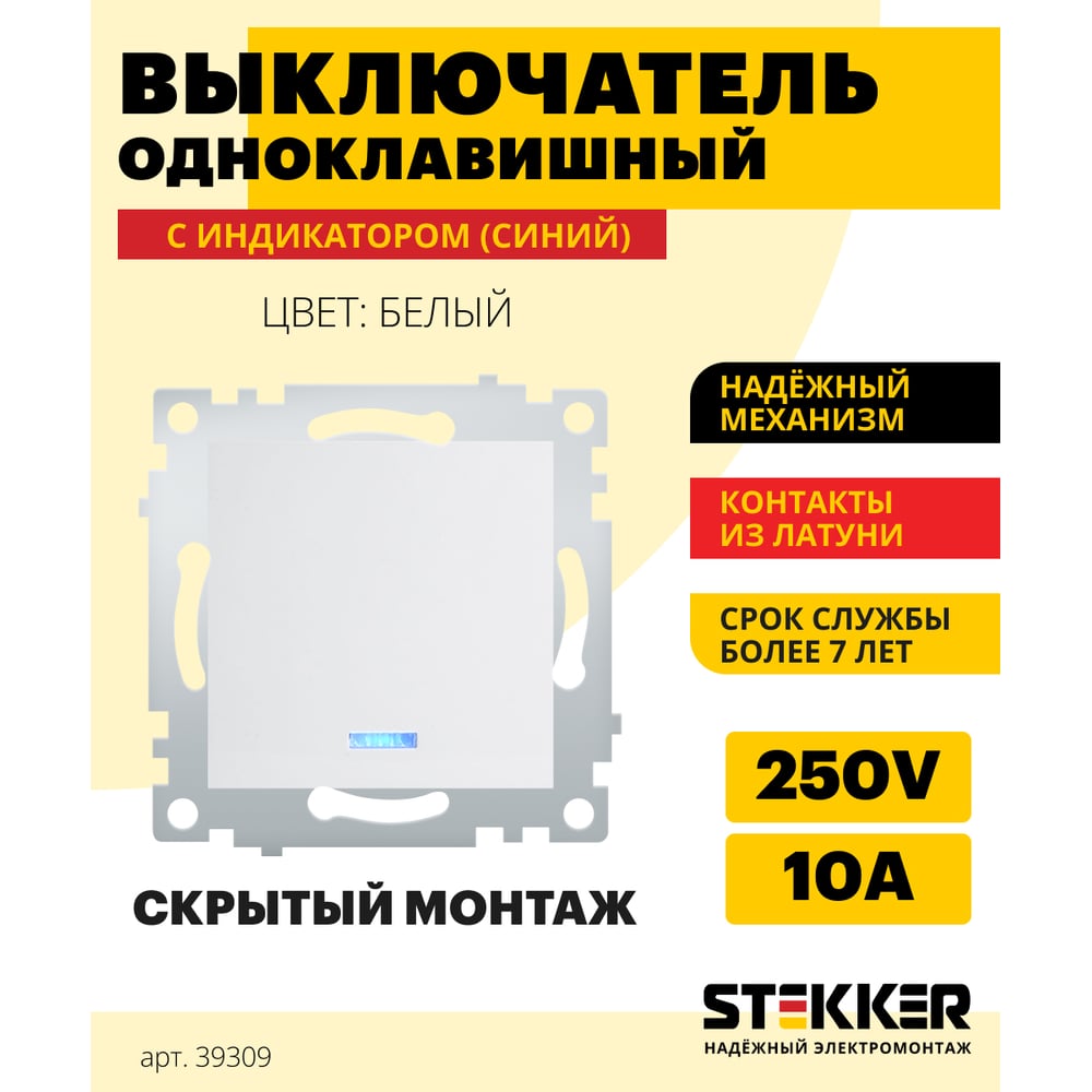 1-клавишный выключатель STEKKER с индикатором, механизм, 250В, 10А, белый серия Эрна PSW10-9101-01 39309