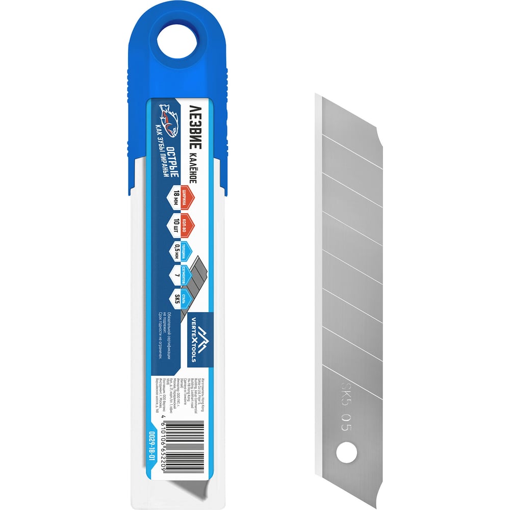 Лезвия каленые сегментированные 10 шт, 18 мм vertextools 0029-18-01