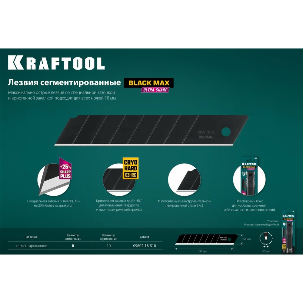 Сегментированные лезвия KRAFTOOL Black max 10 шт, 18 мм, 8 сегментов 09602-18-S10