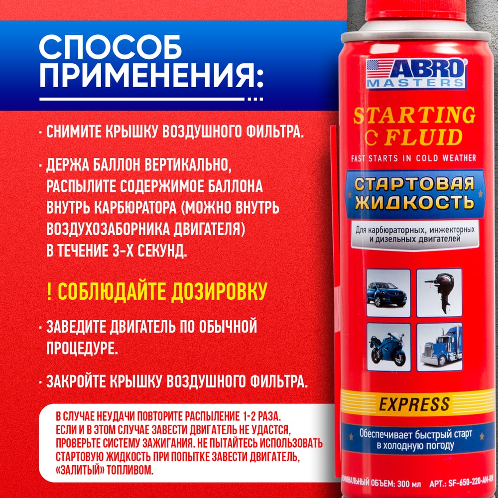 Стартовая жидкость ABRO MASTERS SF-650-220-AM-RW