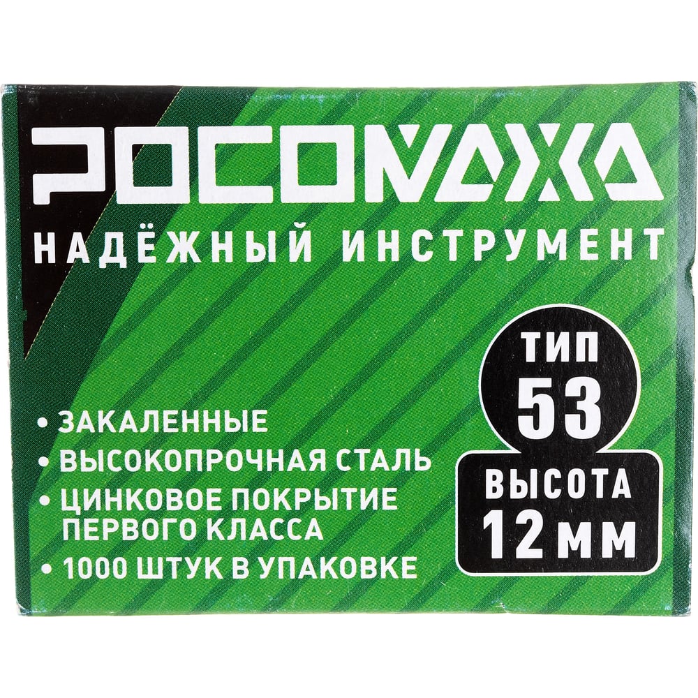 Скобы для степлера РОСОМАХА закаленные, оцинкованные (тип 53, 1000 шт./уп.), высота 12 мм 605312