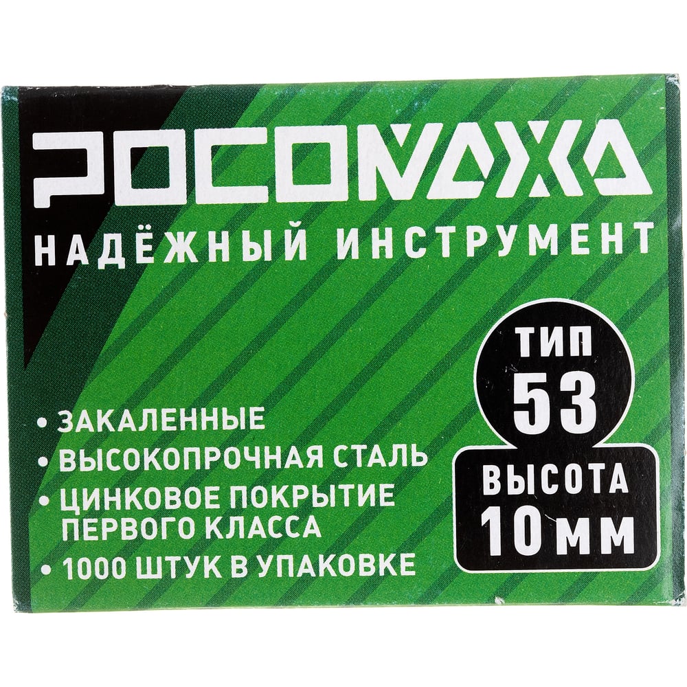 Скобы для степлера РОСОМАХА закаленные, оцинкованные (тип 53, 1000 шт./уп.), высота 10 мм 605310
