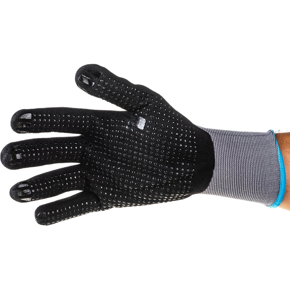 Материал нейлон, эластан Цвет серый/черный Вес нетто 0.049 кг Назначение для защиты от механических повреждений Рисунок точка Размер (буквенная система маркировки) 2XL Размер (цифровая система маркировки) 12 Количество пар в упаковке 1 Сезонность весна/осень/лето Класс вязки 13 Способ фиксации манжета на резинке