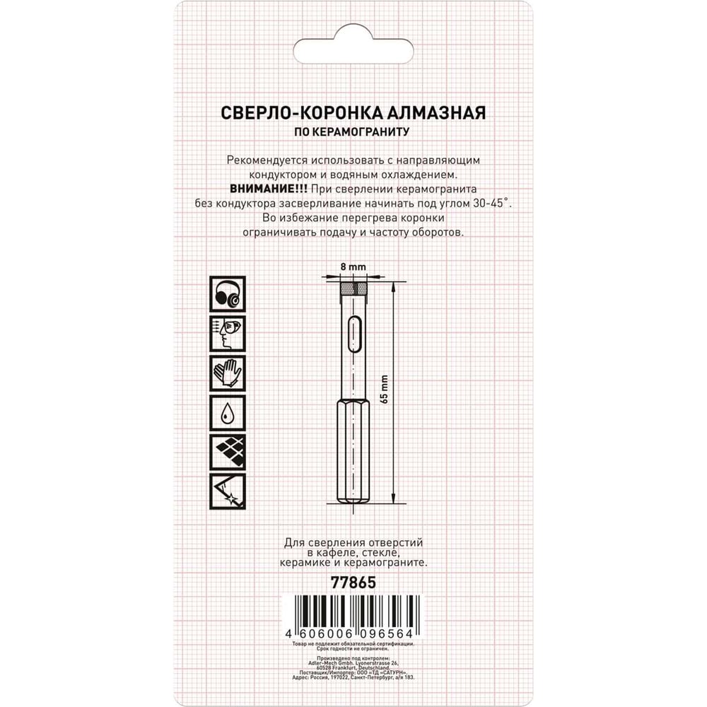 Сверло-коронка алмазная по керамограниту (2 шт; 8х65 мм) ТРИГГЕР 77865 тов-202707