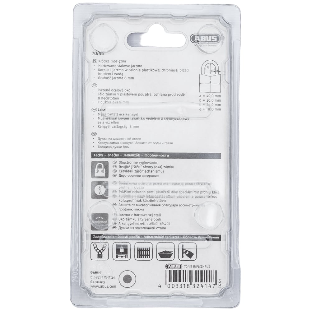 Навесной замок ABUS 70/45 Marine (влагозащищенный) C/PLCZHRUS 64608
