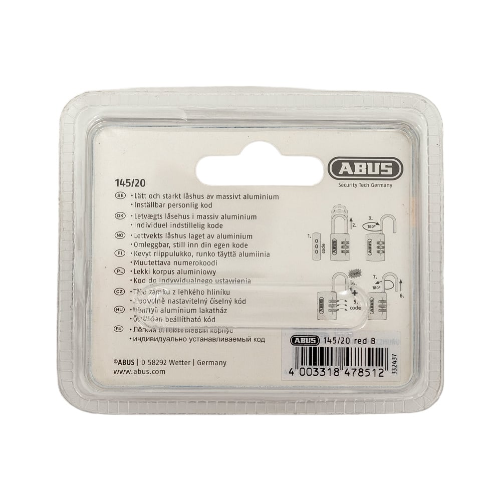 Навесной замок кодовый ABUS 145/20 RED (красный) B/SDKNFINPLCZHRUS 64925