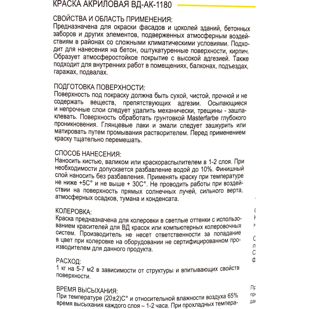 | Тип | акриловая (водно-дисперсионная) |