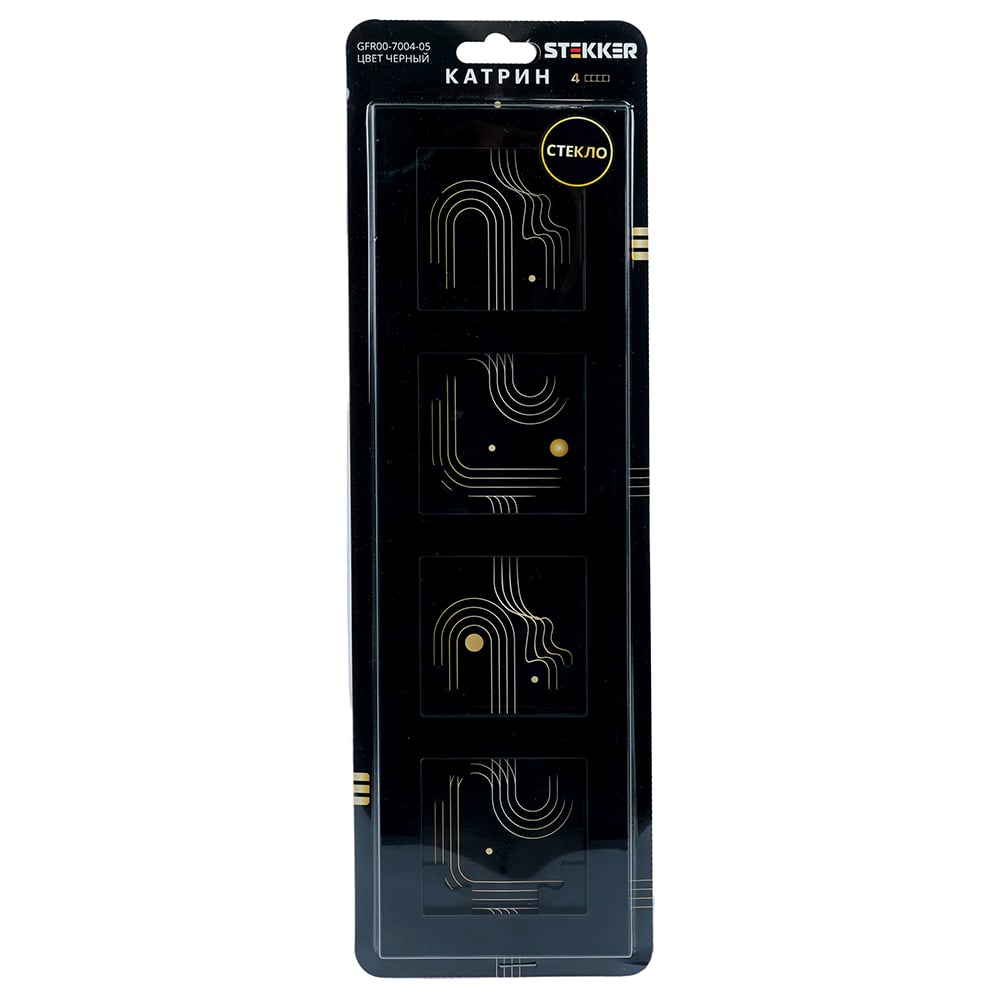 4-местная горизонтальная стеклянная рамка STEKKER GFR00-7004-05, серия Катрин черный 39521