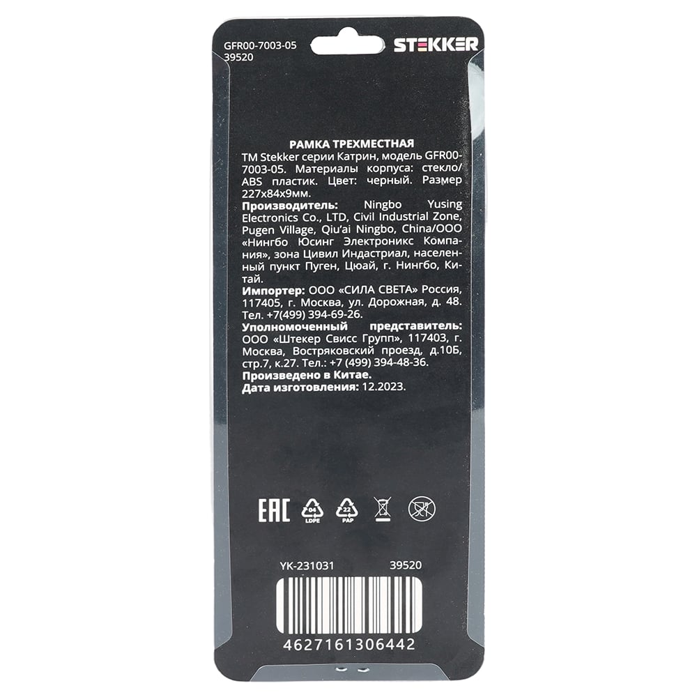 Трехместная горизонтальная рамка STEKKER GFR00-7003-05 39520