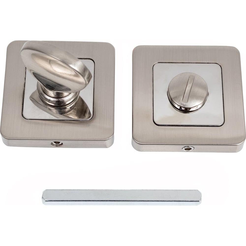 Габариты без упаковки 52x52x10 мм Материал алюминий Цвет матовый никель/хром Количество 1 шт Тип WC-комплект Толщина дверного полотна 45 мм Форма основания квадрат Ключ нет Размер сечения квадрата фиксатора 6 мм Длина квадрата 55 мм