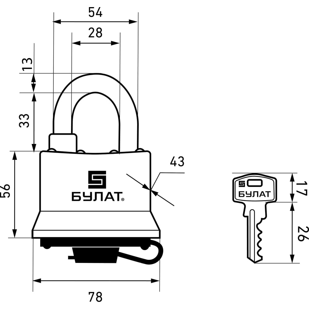 | Внутренняя высота дужки (в закрытом состоянии) | 33 мм |