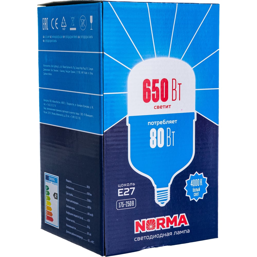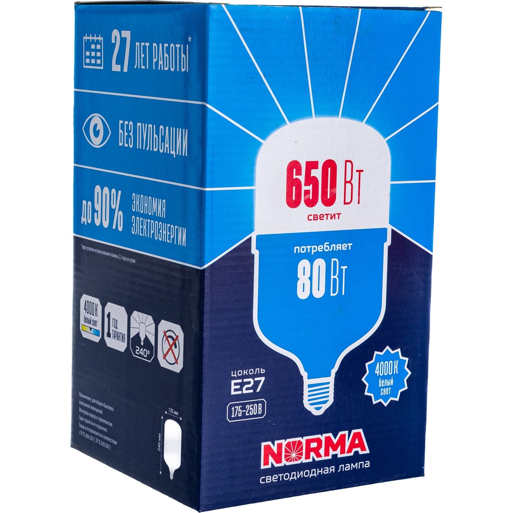 | Эквивалент лампы накаливания | 650 Вт |
