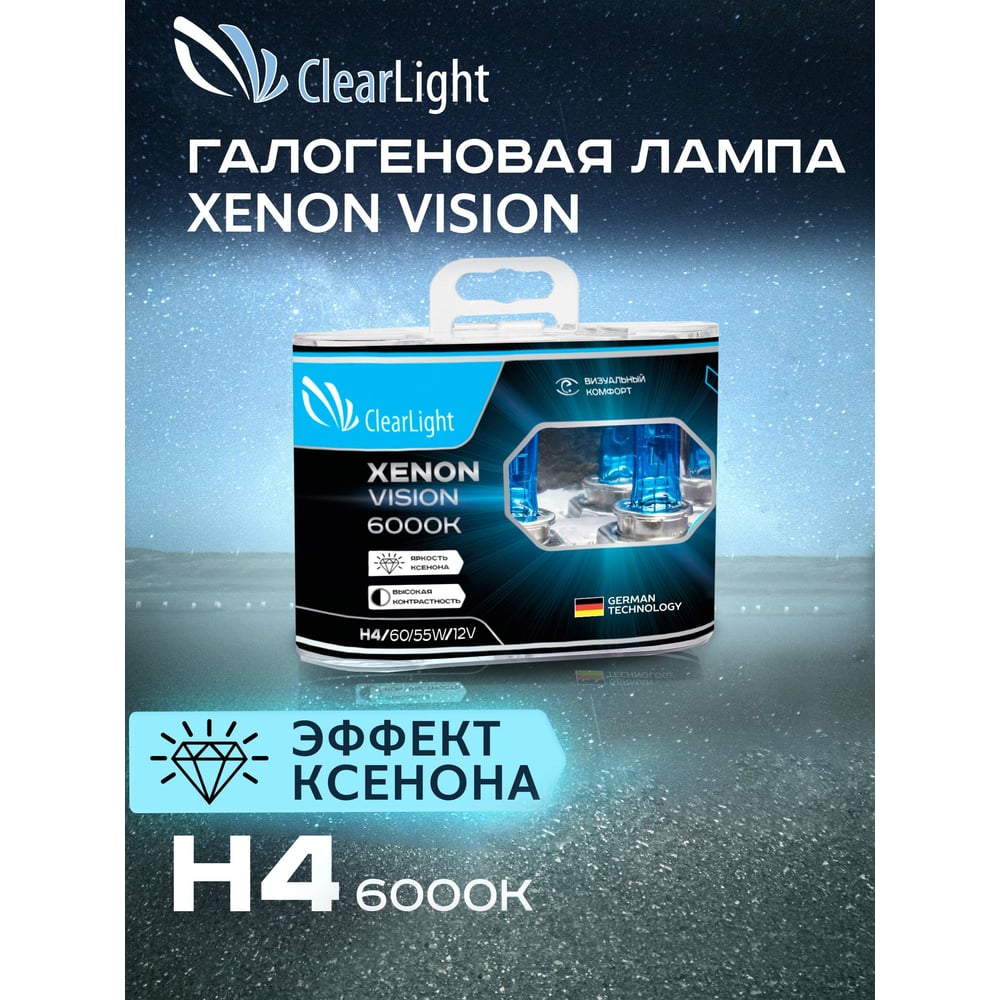 Комплект ламп Clearlight H4, 12 В, 60/55 Вт, XenonVision, 2 шт. MLH4XV